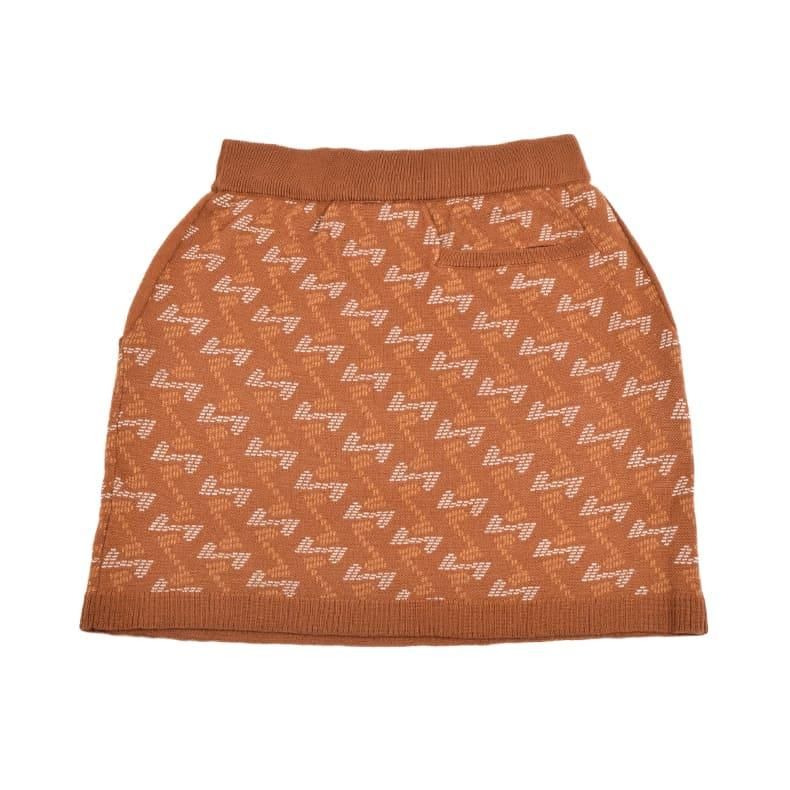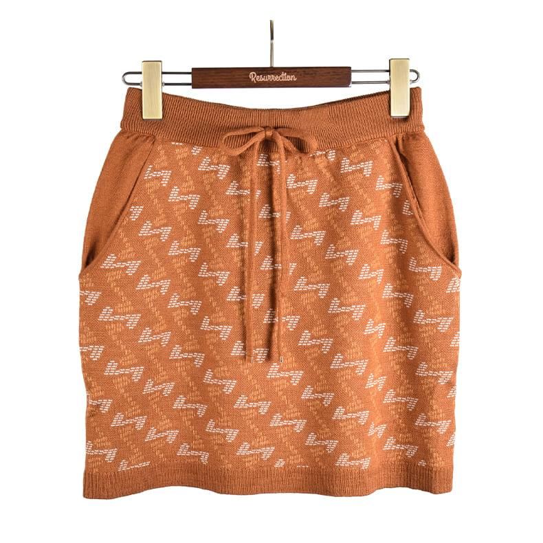 レザレクションが持つクラシカルな雰囲気の幾何学模様を、いつもより少し大きめのデザインで落としこむことにより、キマリすぎず温かみのあるニットスカートに仕上げました。
