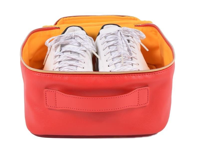 使用している合皮はシボなどの質感が本革と見間違うほど。見た目にもシューズケースとしてのクォリティがグッと上がっていますよ。