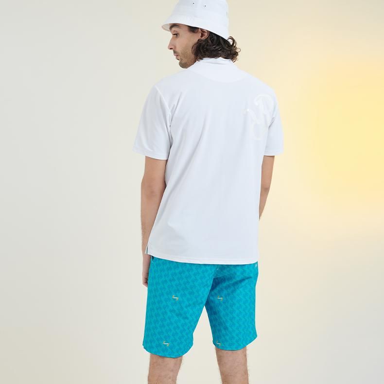夏の大本命のショートパンツとして間違いなくオススメできるアイテム。総柄ボトムスが苦手なお客様でもコーディネートがしやすく、周りのゴルファーと差をつけるオシャレコーデが完成するのでぜひ挑戦頂きたいアイテムです。
