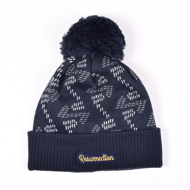 一目でレザレクションの帽子と分かる、幾何学模様をあしらったデザイン。