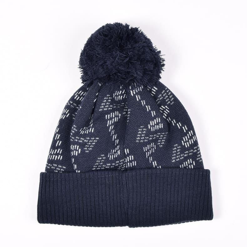 ニットキャップの上に付いたポンポンでグッと可愛さもアップ。厚めに着込んだ冬のコーデイネートもしっかりまとめてくれますよ。