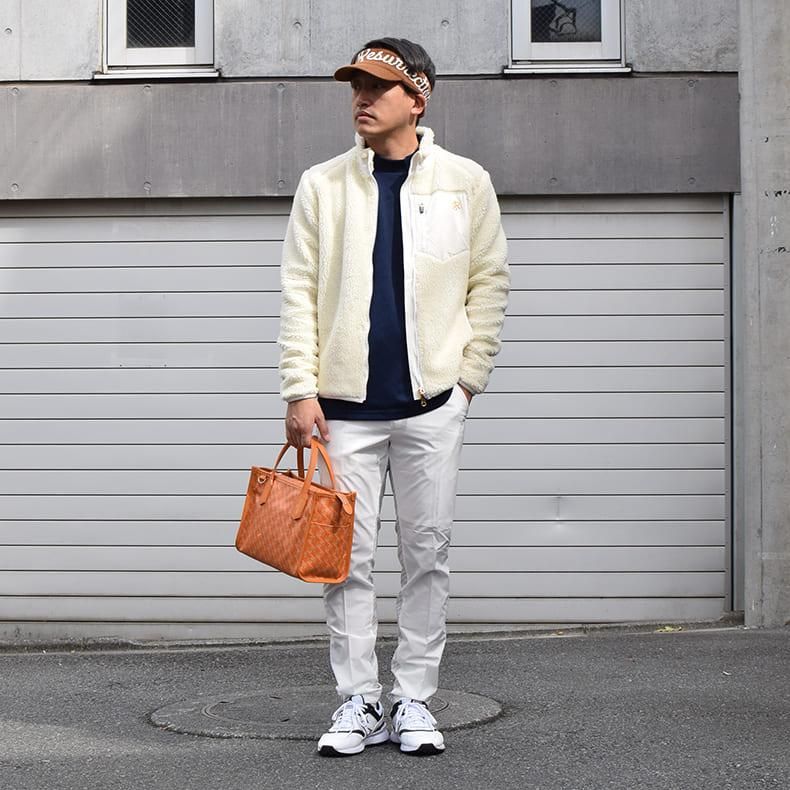 ブラックやネイビーなどの暗めのトーンのウェアはもちろん、ホワイトカラーのウェアとも合わせやすいんです。ぜひアクセントカラーとして取り入れてください。秋冬らしい温かみのある印象をプラスしてくれますよ。