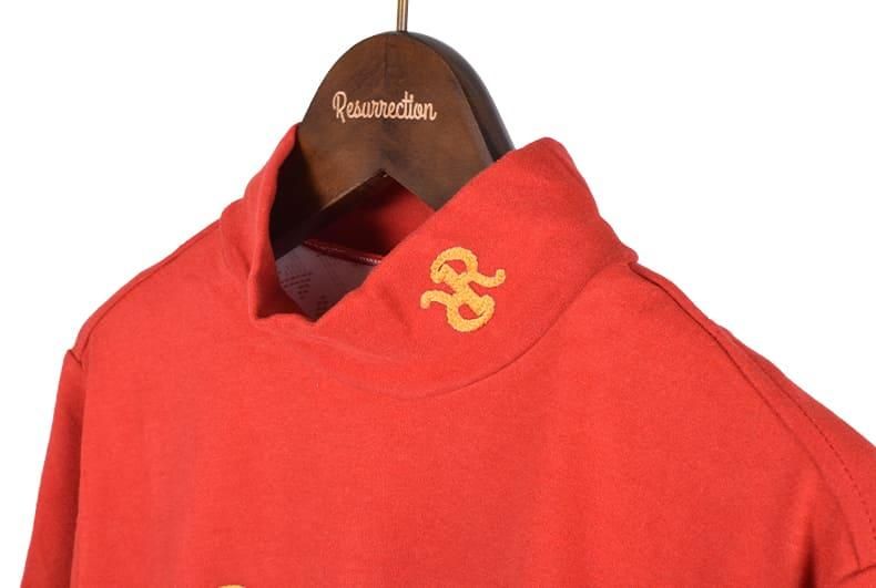 スウェットやニットとの重ね着をした時にも首元にあるRRロゴがいいアクセントになりますよ。