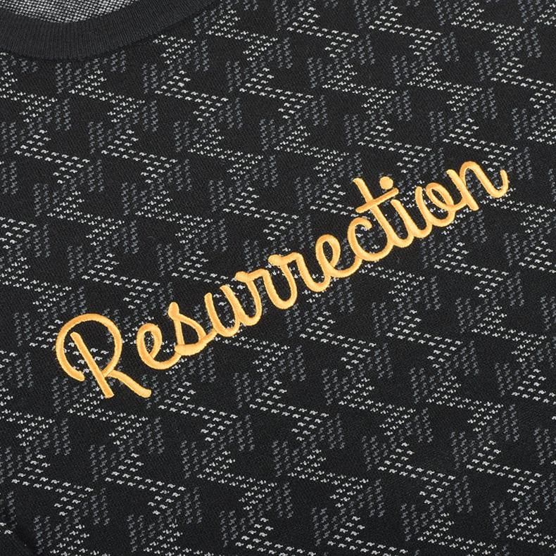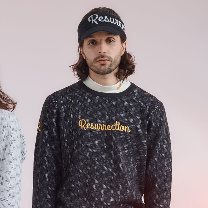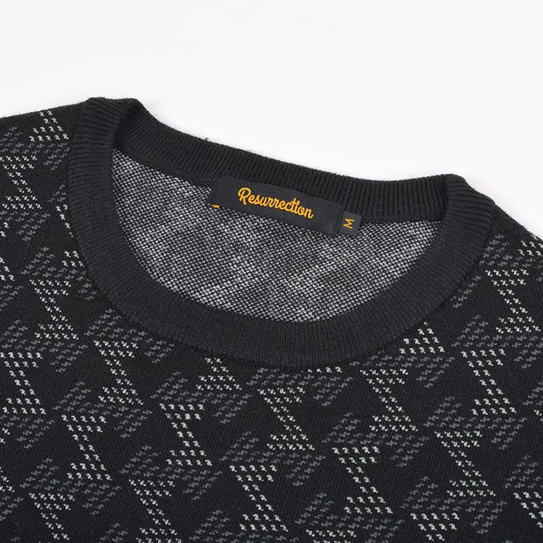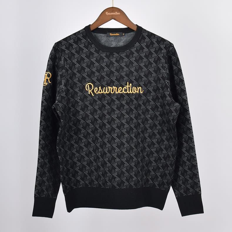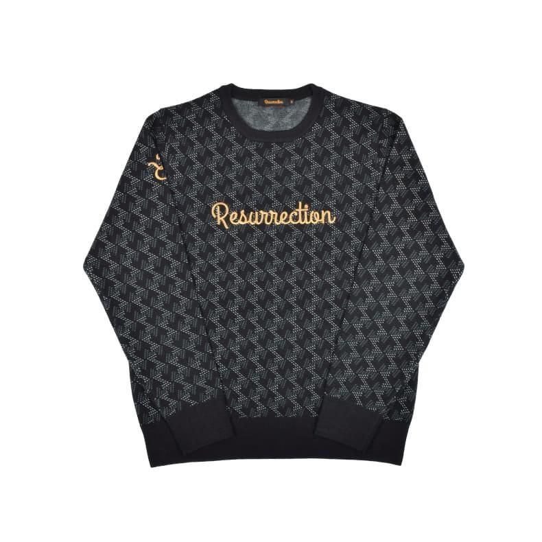 レザレクションが持つクラシカルな雰囲気の幾何学模様をニット素材に落とし込むことにより、どこか温かみのあるセーターに仕上げました。
