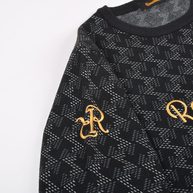 胸元と右腕には、レザレクションのブランドロゴをゴールドの刺繍で表現。今まではあまりブランドロゴを大きく表現することが少なかったので新鮮な印象。このニットの上からアウターを羽織った時にも、良いアクセントになります。