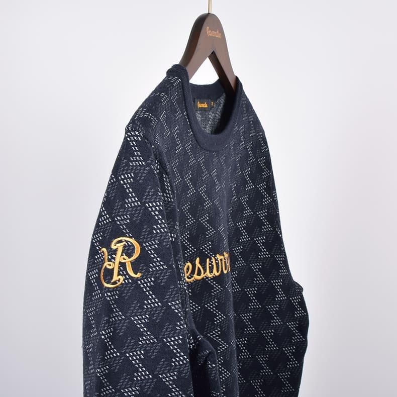 アパレルデビューから毎年欠かさずリリースしているジオメトリックセーター。全体に幾何学模様が編まれたレザレクションならではのデザイン。