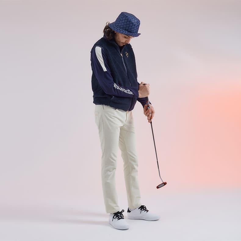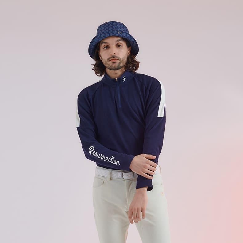 メンズは、定番のホワイト、ネイビーに加え今シーズン、レザレクションが提案させて頂くネイビーコーデに良いアクセントとなるブルーをピックアップ。