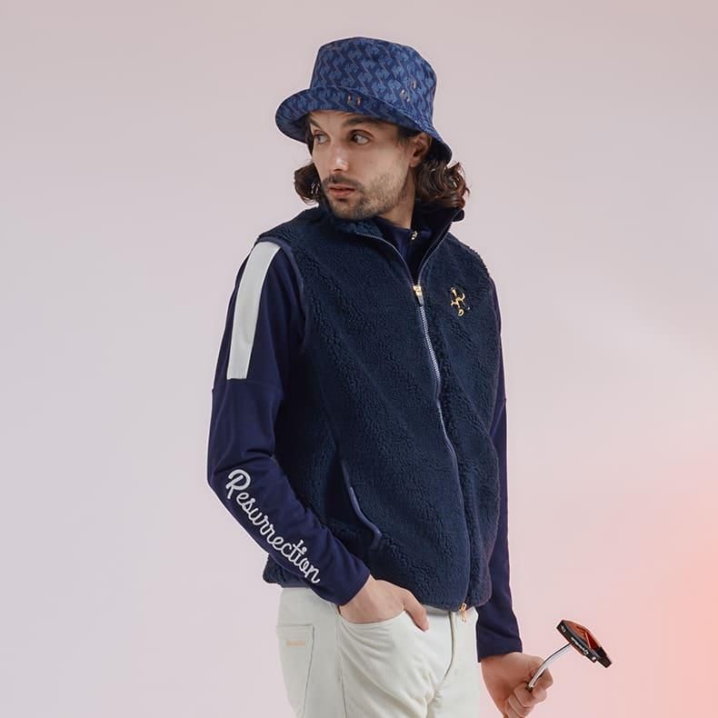 今シーズンレザレクションが提案する、ボアベストやダウンベストと組み合わせて頂くと肩口から覗くラインや、腕部分のチェーンステッチロゴが良いアクセントとなり別のデザインと思えるほど新しい印象になります。