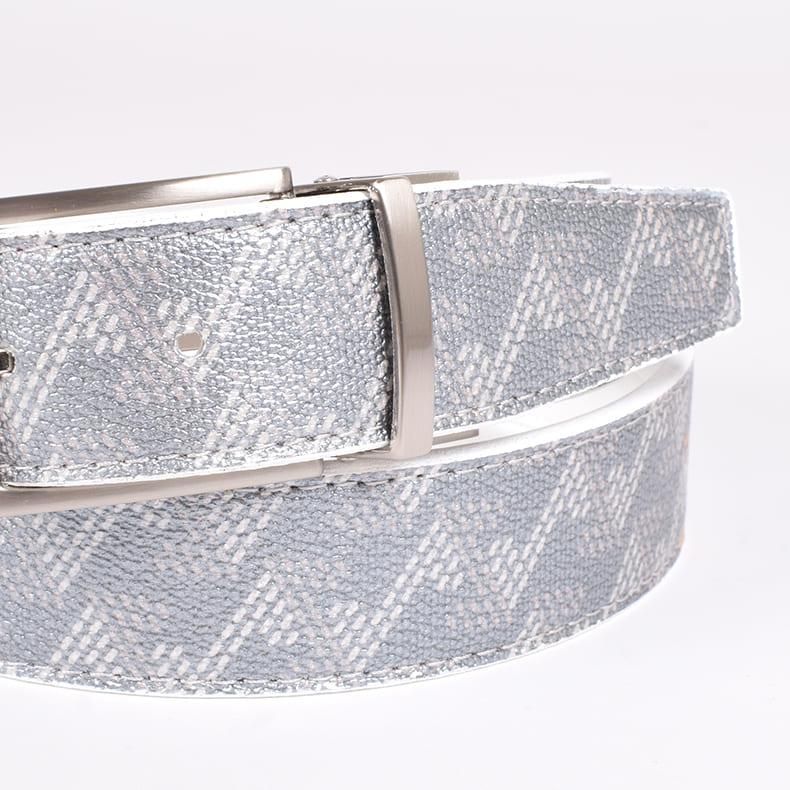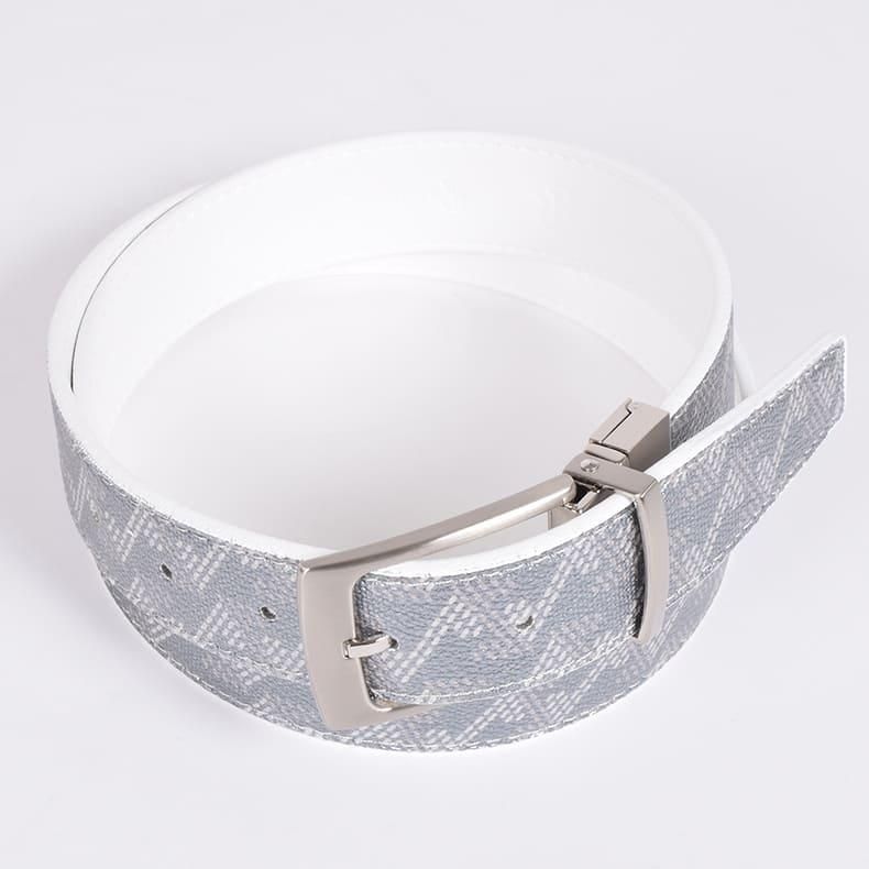 なんと言っても人気なのが、先端から末端までオリジナルの幾何学模様のPVC生地を使用したベルト。ラグジュアリー感を演出し、他にはない唯一無二なアイテムとなっています。
