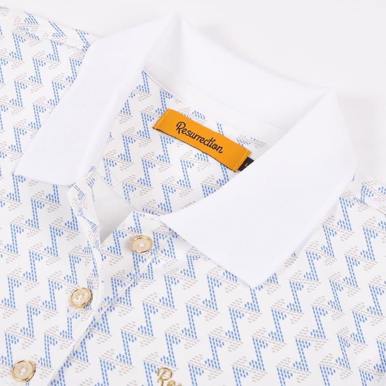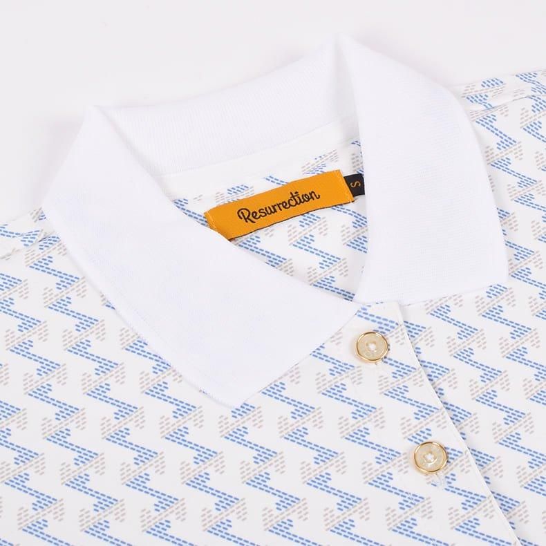 実はレザレクションの幾何学模様を全体にあしらったポロシャツをリリースするのは初めて。