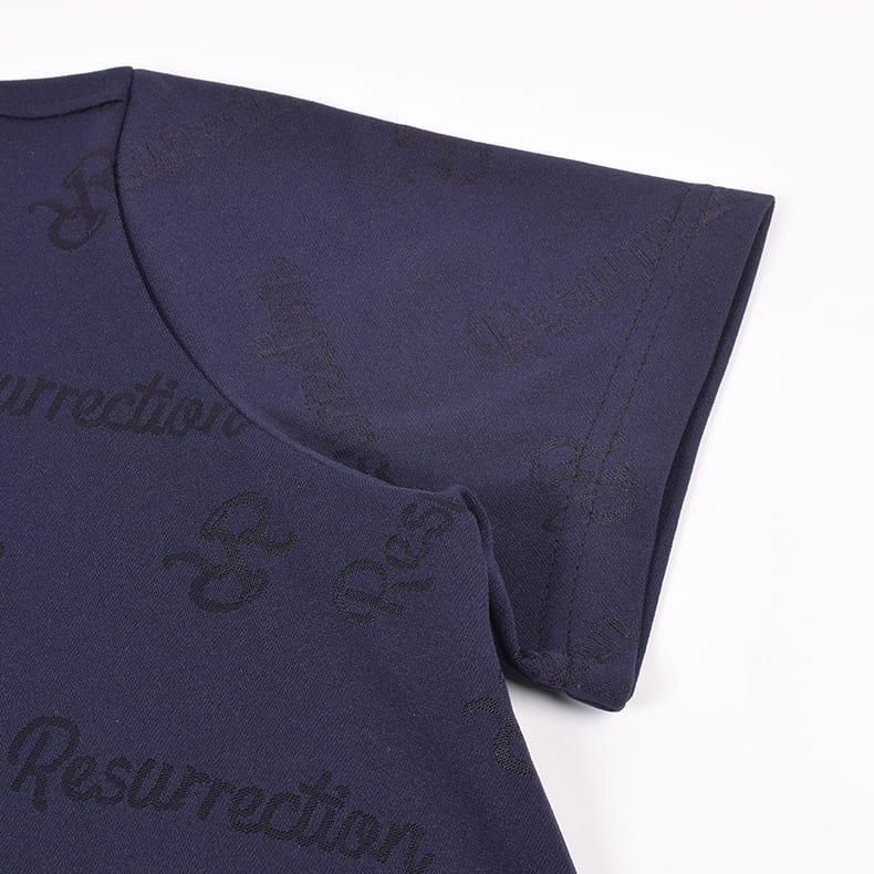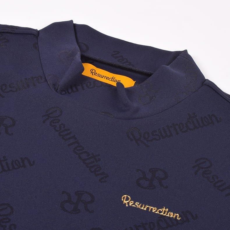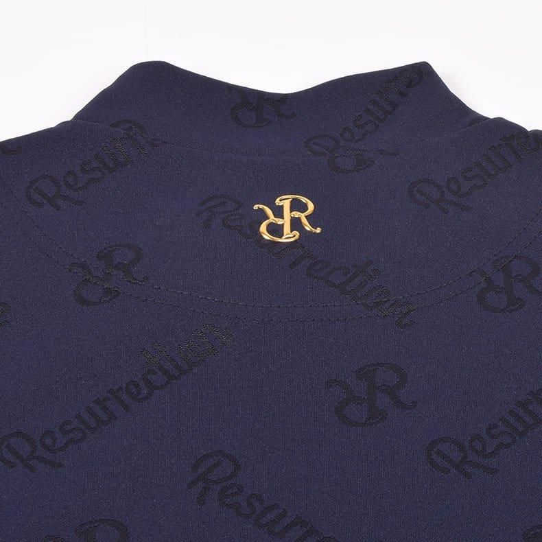 シンプルで合わせやすいけれど普通すぎない今回のモックネック。特徴はなんといってもジャガード編みで表現したレザレクションオリジナルのロゴモノグラム。