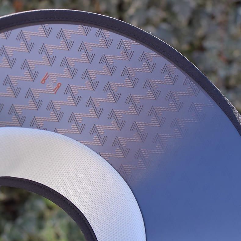 大きなツバが作り出す影は、しっかりと顔全体を覆ってくれる安心感。直射日光を避けられるので通常のサンバイザーよりも涼しさを感じて頂けます。