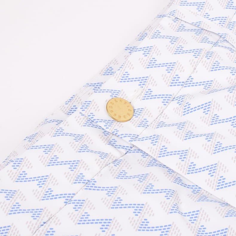 幾何学模様がほどよく大人っぽい。今までのスタイリングに新しいエッセンスを与えてくれるボトムスに仕上がっています。