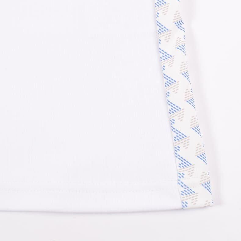 デザインは、レザレクションの幾何学模様をボディサイド部分・袖下部分にライン状にあしらい、歩いている時や、スイングをした時にさりげない主張を。