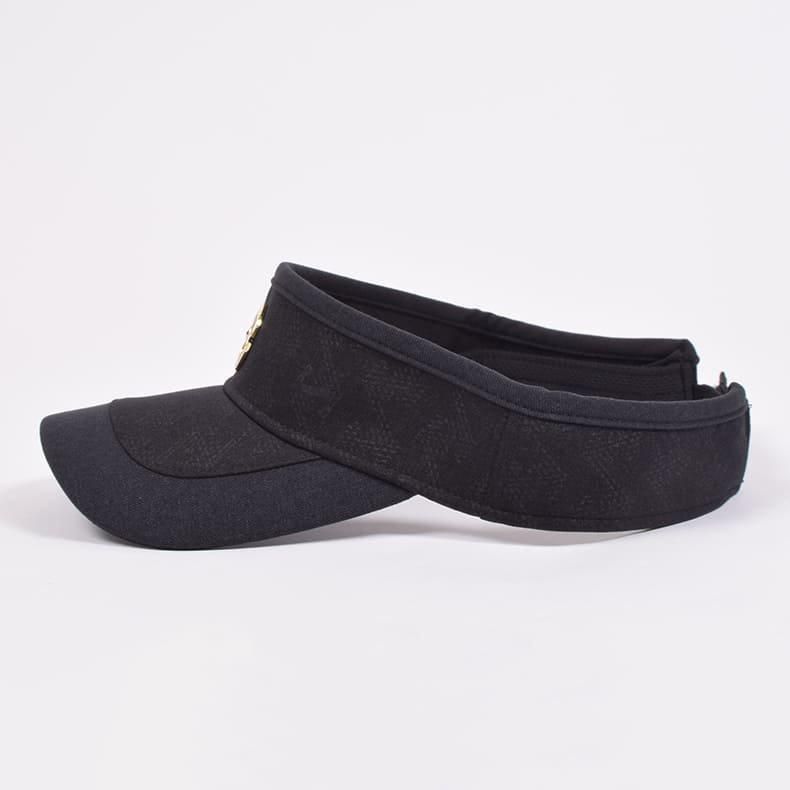 ネイビーのセットアップに、ブラック1色のサンバイザーを合わせるのはなんだか気持ち悪い。でもこのサンバイザーだと、ツバにネイビーを配色しているのでコーディネートにスッと馴染んでくれる。