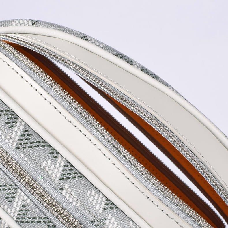 ゴールドのファスナーがシンプルになりすぎないアクセントにもなっています。バッグ内側には、小物を仕分ける気の利いたポケットも配置。整理整頓もはかどります。