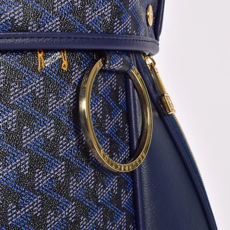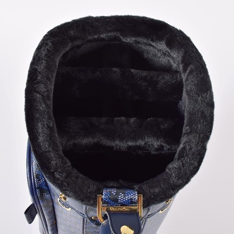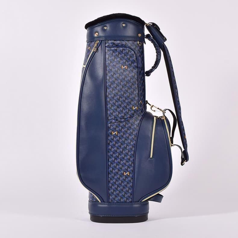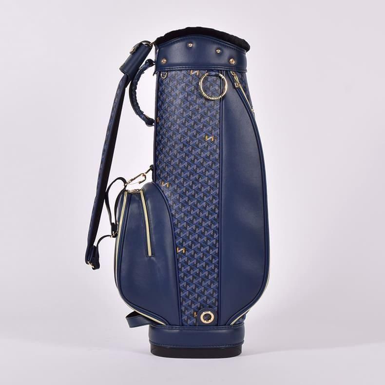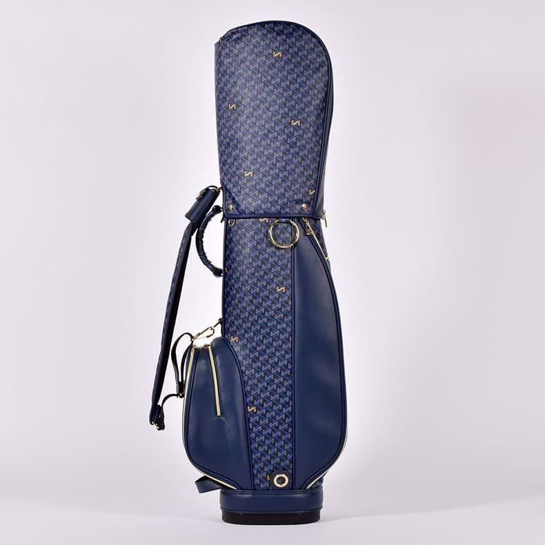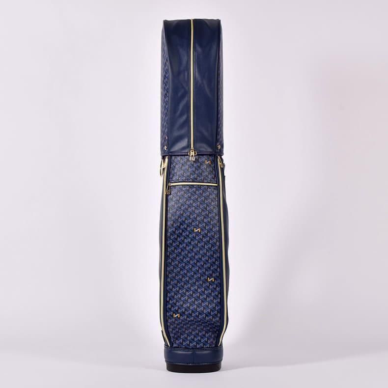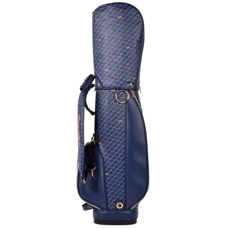 中心にはブランドロゴをあしらい全体的に角を出したデザインの金属パーツが加わることで、キャディバッグの雰囲気がグッと引き締まり、一気に高級感がアップ致しました。