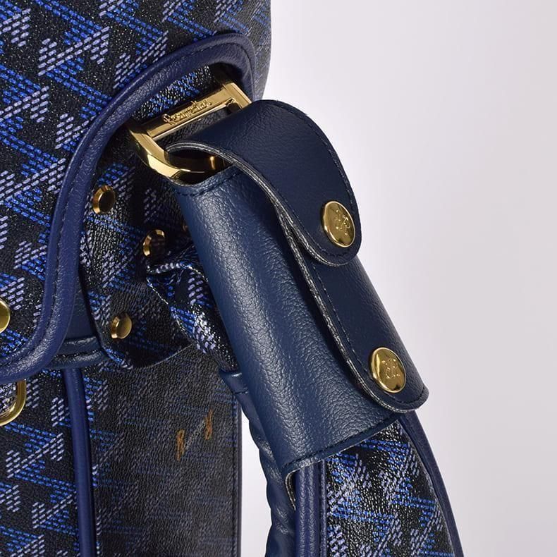 口枠とパイピングにはトーンの異なるブルーをセレクト。濃淡のあるネイビーのコントラストが、藍染めの繊細な色合いを想起させ上質な奥行きを演出いたしました。