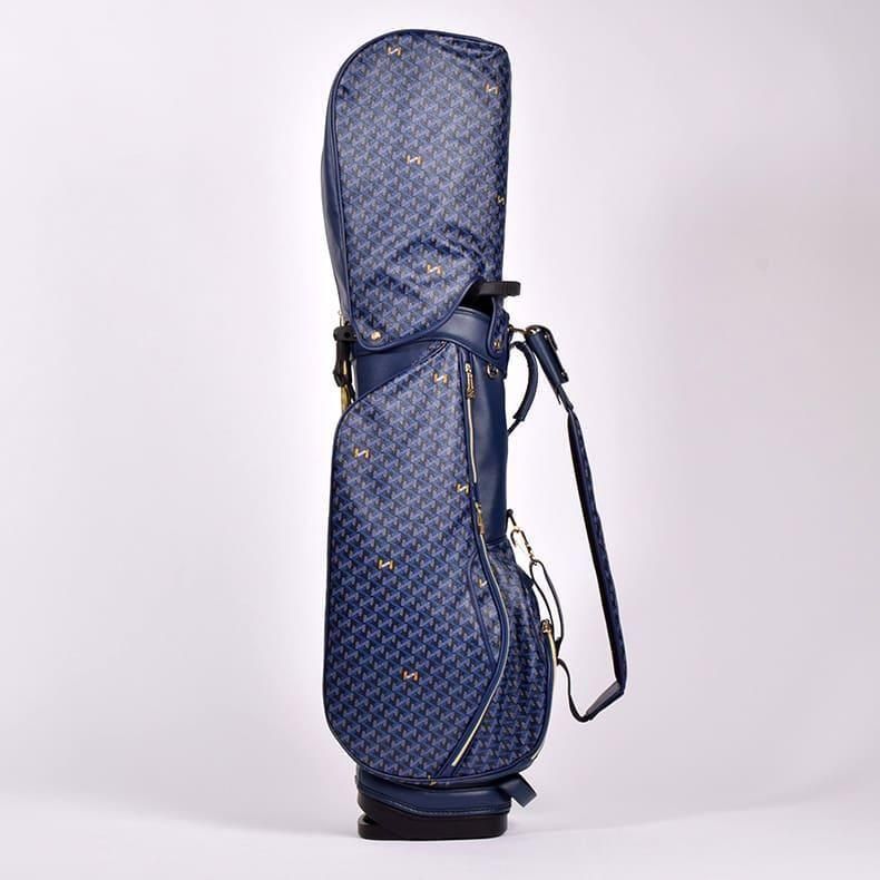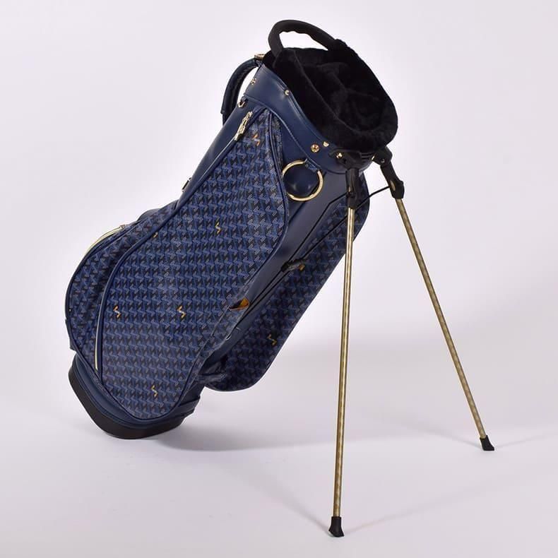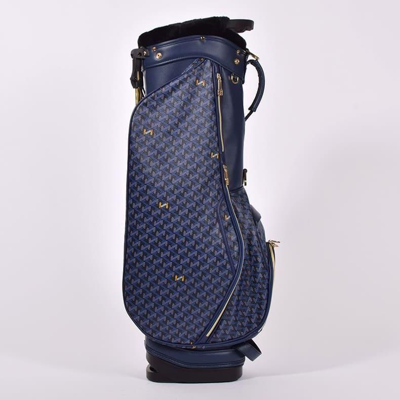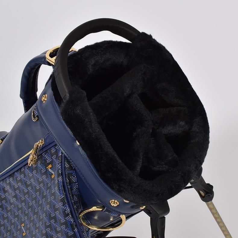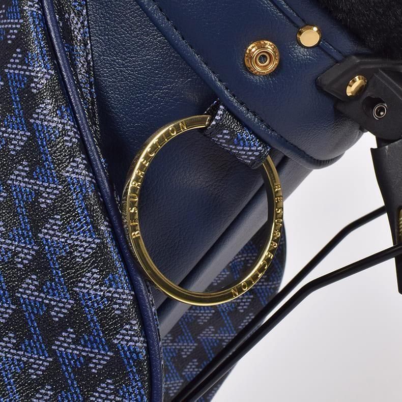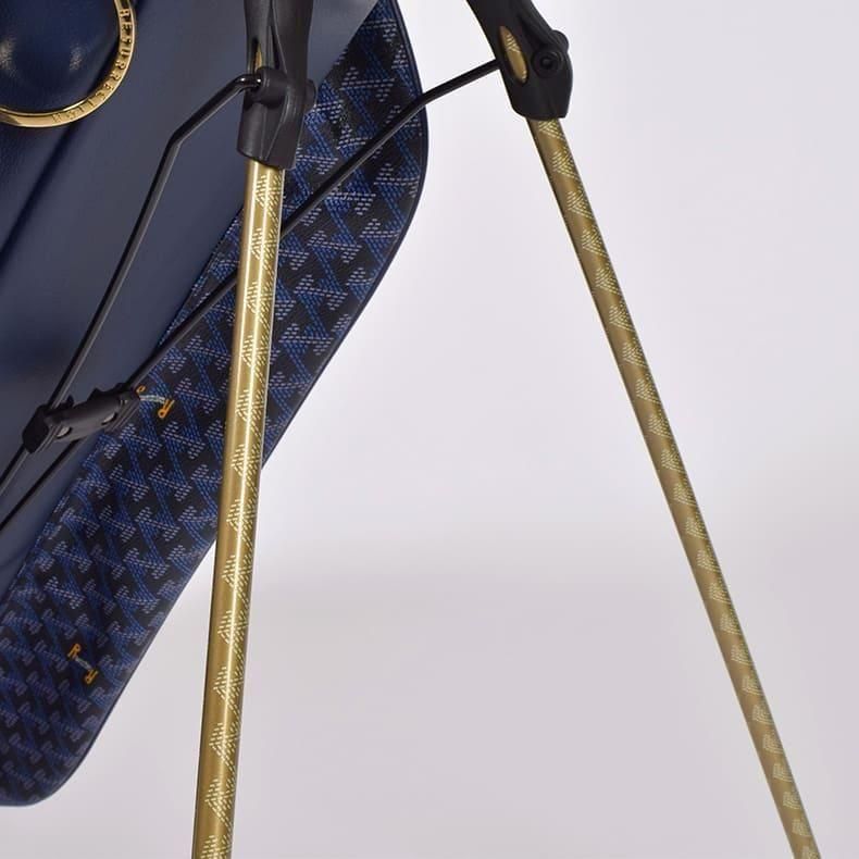 前作までは側面にクッション素材をあしらったスタンド型キャディバッグらしいデザインになっておりましたが、今回は側面すべてを幾何学模様の入ったPVC生地にチェンジ。ガラッとイメージの変わったラグジュアリー感のある雰囲気に。