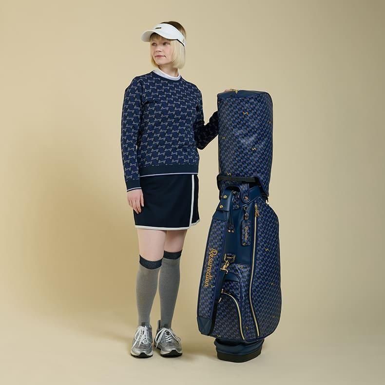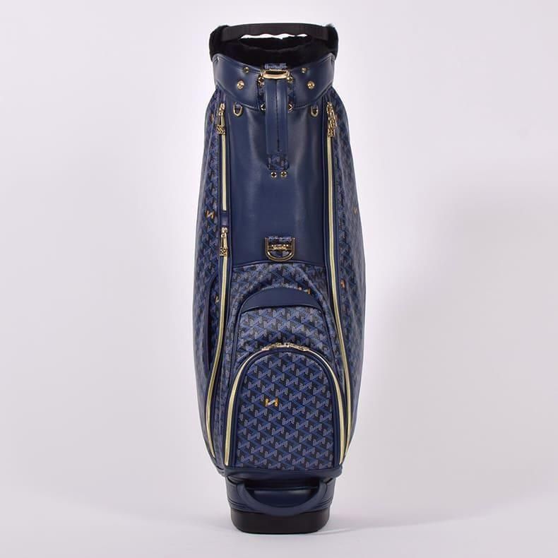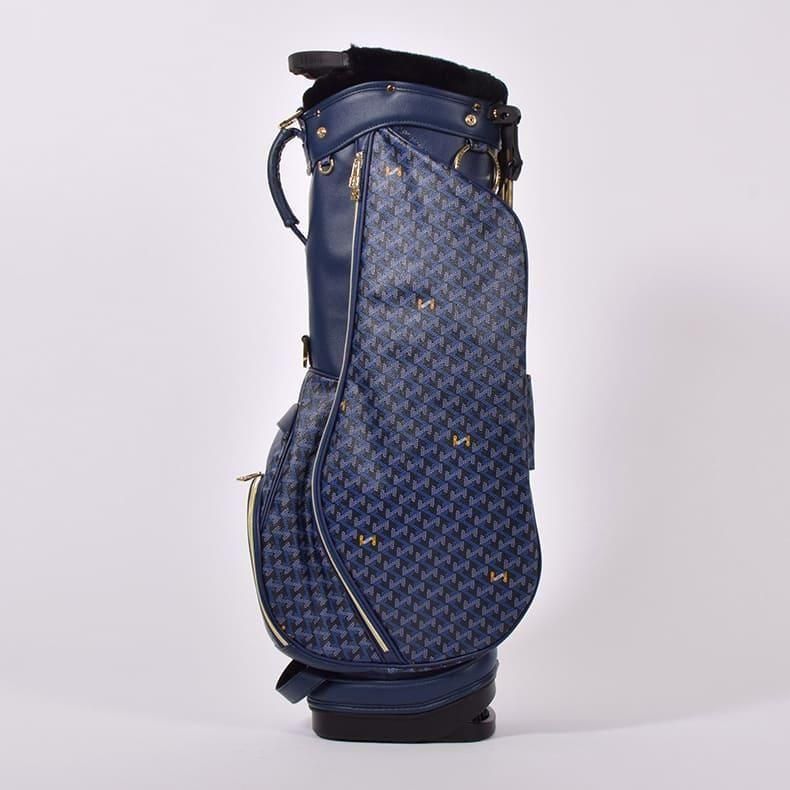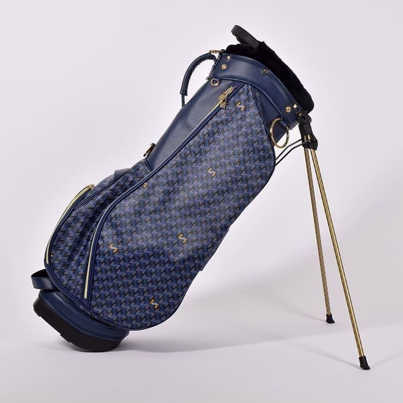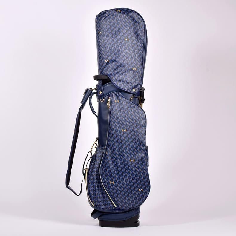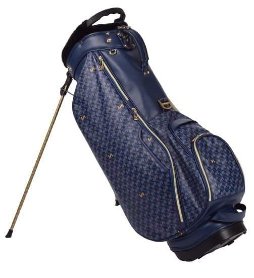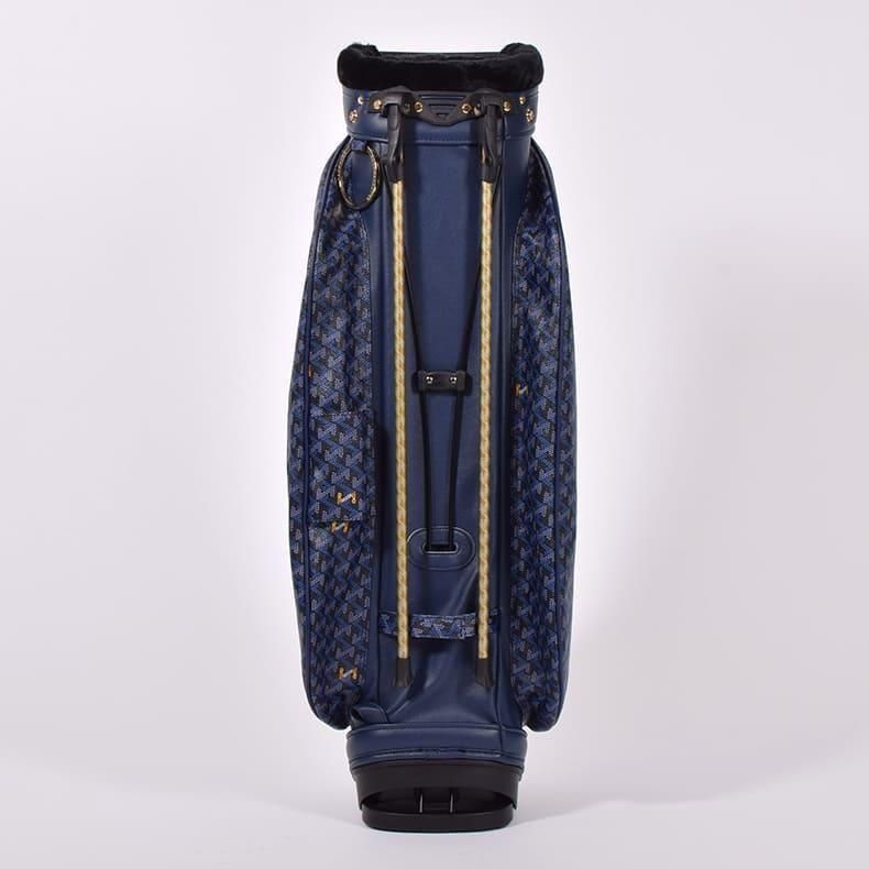 前作までは側面にクッション素材をあしらったスタンド型キャディバッグらしいデザインになっておりましたが、今回は側面すべてを幾何学模様の入ったPVC生地にチェンジ。ガラッとイメージの変わったラグジュアリー感のある雰囲気に。