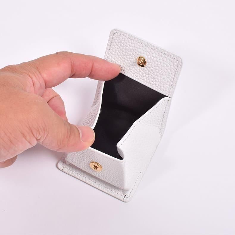 小さいポーチはシボ感のある本革を採用し、ブランドロゴの箔押しを施した高級仕様。独特なくたっとした柔らかな手触りがクセになります。柔らかいのでポーチの中を広げて見やすいのもポイントです。硬貨だったら20枚は難なく入れられて容量も◎。