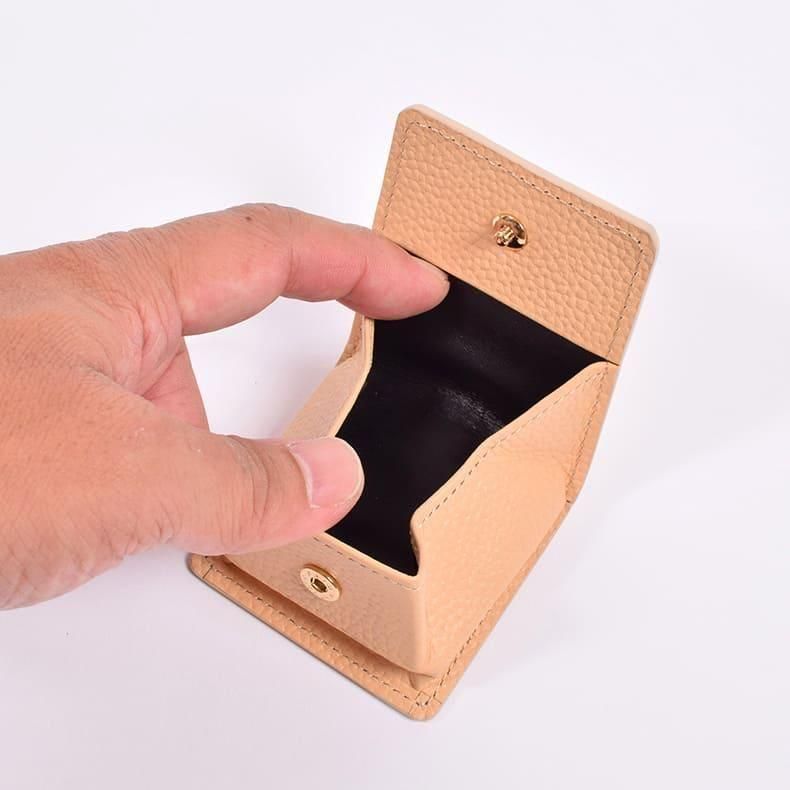 小さいポーチはシボ感のある本革を採用し、ブランドロゴの箔押しを施した高級仕様。独特なくたっとした柔らかな手触りがクセになります。柔らかいのでポーチの中を広げて見やすいのもポイントです。硬貨だったら20枚は難なく入れられて容量も◎。