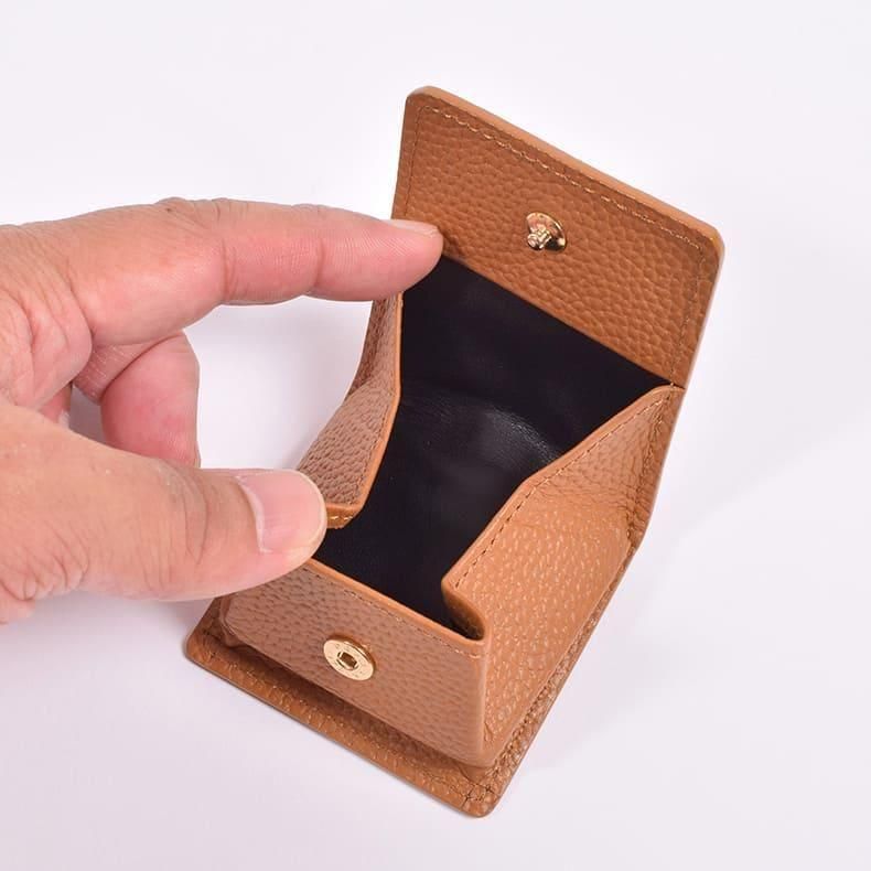 小さいポーチはシボ感のある本革を採用し、ブランドロゴの箔押しを施した高級仕様。独特なくたっとした柔らかな手触りがクセになります。柔らかいのでポーチの中を広げて見やすいのもポイントです。硬貨だったら20枚は難なく入れられて容量も◎。
