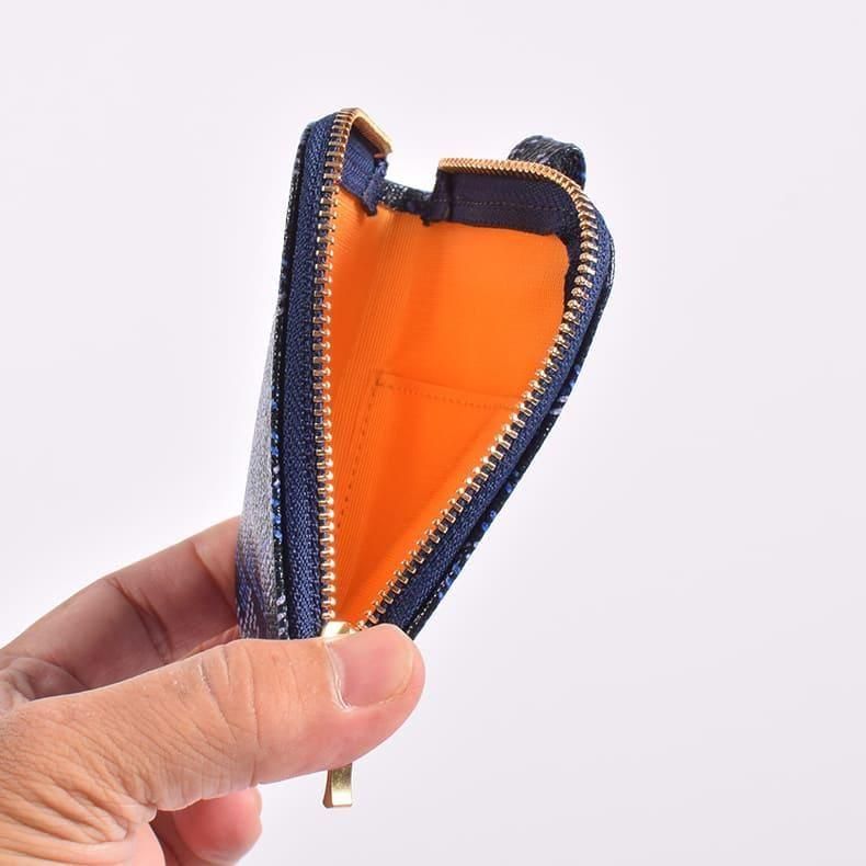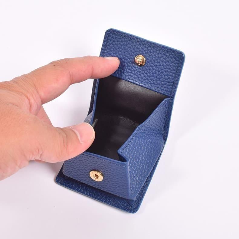 小さいポーチはシボ感のある本革を採用し、ブランドロゴの箔押しを施した高級仕様。独特なくたっとした柔らかな手触りがクセになります。柔らかいのでポーチの中を広げて見やすいのもポイントです。硬貨だったら20枚は難なく入れられて容量も◎。