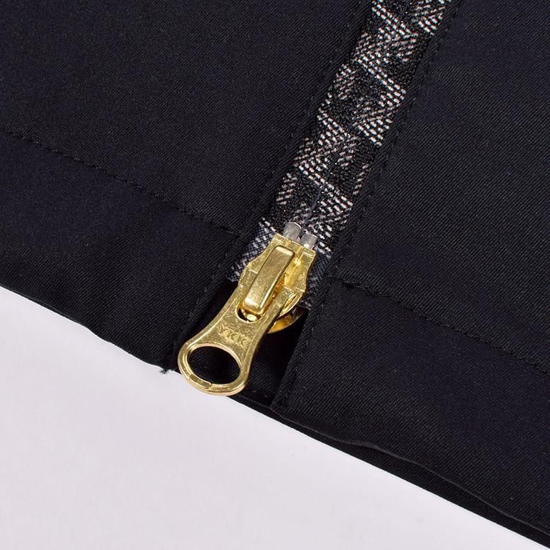 デザインは、流行り廃りなく長くご着用頂けるようにシンプルを心掛けました。初めて採用したのは、ファスナーテープへのプリントという技術。ファスナー部分にレザレクション柄を施すことにより、特別感と高級感のある雰囲気に仕上げています。