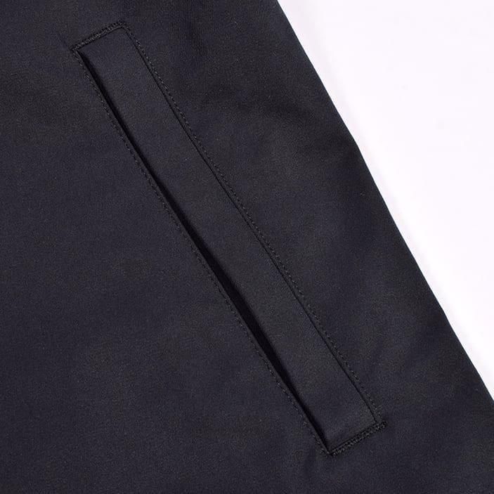 まずは重要な生地。今回はユニチカ(株)が開発したTACTEEM®(タクティーム)という素材をセレクト。独自の特殊複合糸を用い、生地表面に微細凸凹構造を形成することで、水滴との接触面積を減少させ高い水滴転がり性を実現した耐久撥水素材です。