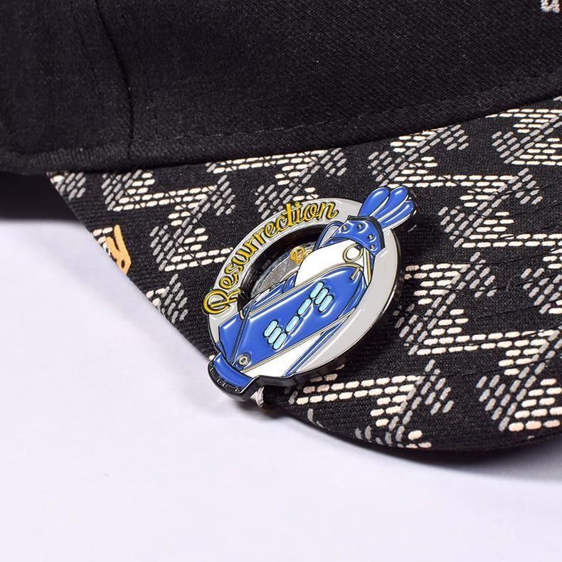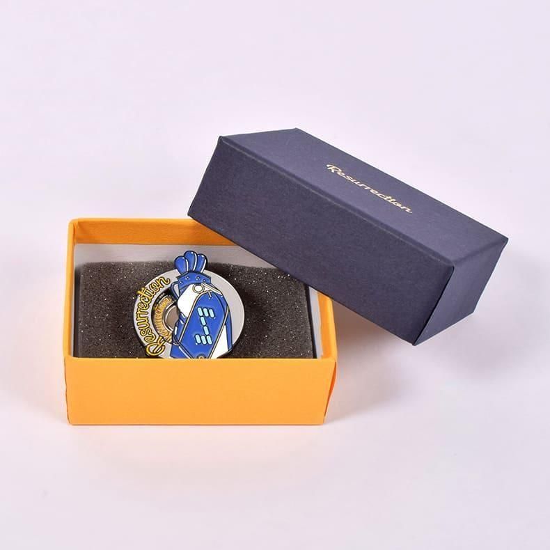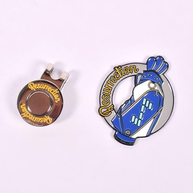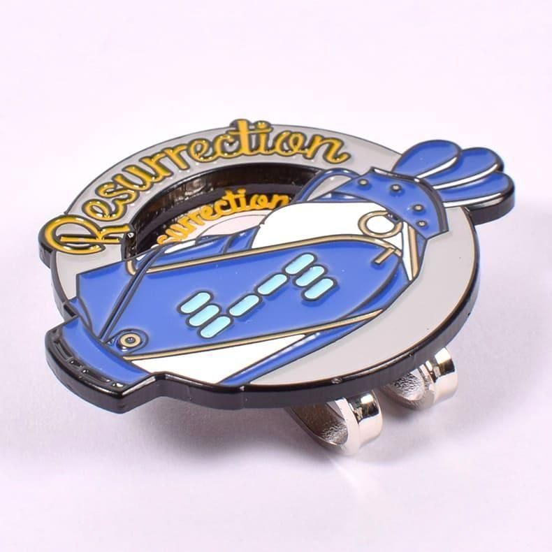 デザインは、レザレクションの代名詞キャディバッグ「オリオラ」が主役。マーカーの種類は世界中さまざまなデザインがあると思いますがキャディバッグをモチーフとしたマーカーは初めてかもしれません。