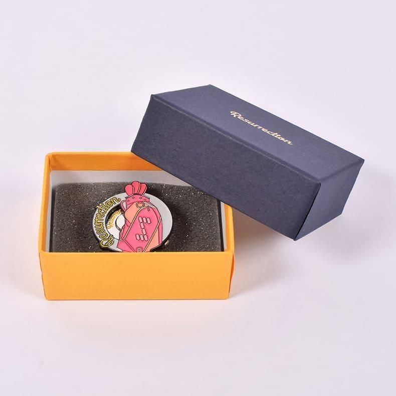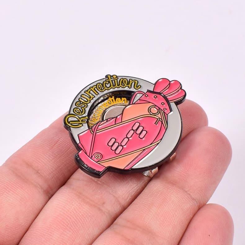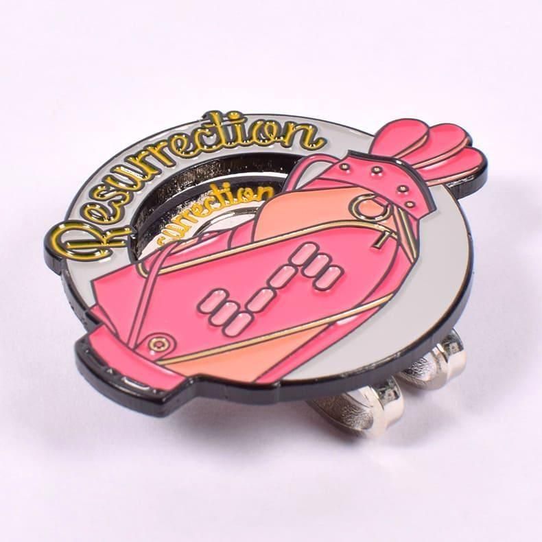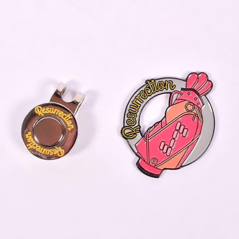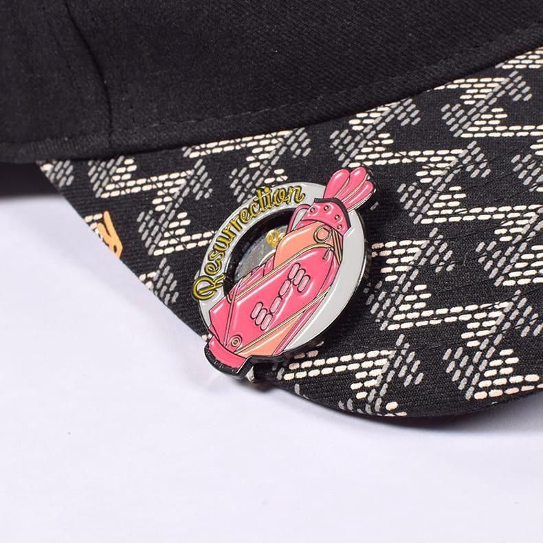 デザインは、レザレクションの代名詞キャディバッグ「オリオラ」が主役。マーカーの種類は世界中さまざまなデザインがあると思いますがキャディバッグをモチーフとしたマーカーは初めてかもしれません。