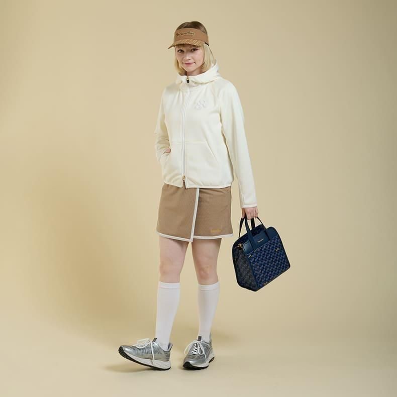 ホワイトで統一されたパイピングがスイングの動きに合わせて軽やかな印象をプラスしコーディネートをぐっと華やかに演出いたします。