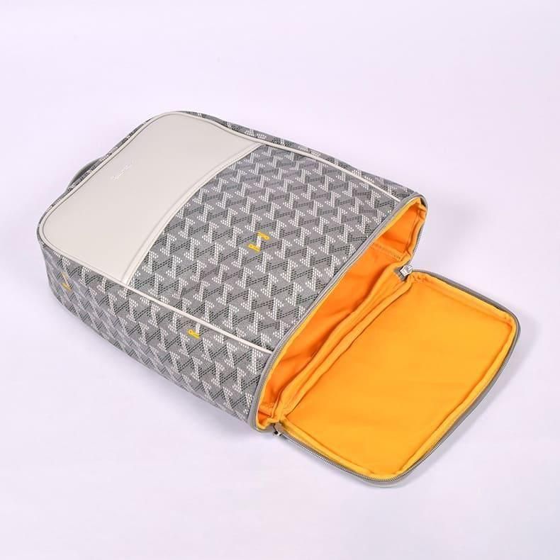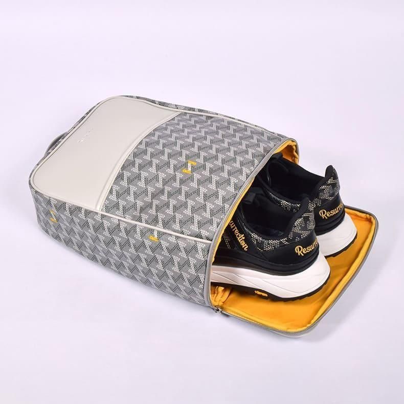 今回は、シューズケースの使い方やシューズの入れ方など色々とイメージをしたどり着いた形状。シューズの履き口を持って、つま先からシューズケースに納める。自然なアクションで、スマートに収納できる形状は今までありそうでなかったシューズケースの新形状だと思います。