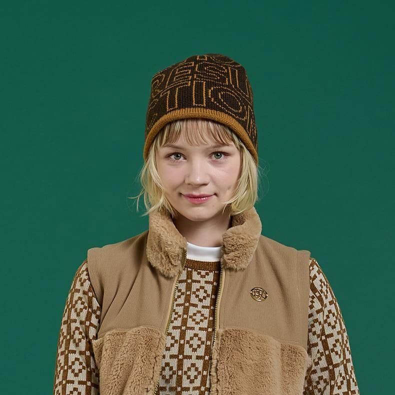 ロゴモノグラムニットビーニー / ブラウン×キャメルBE34KNCAP01