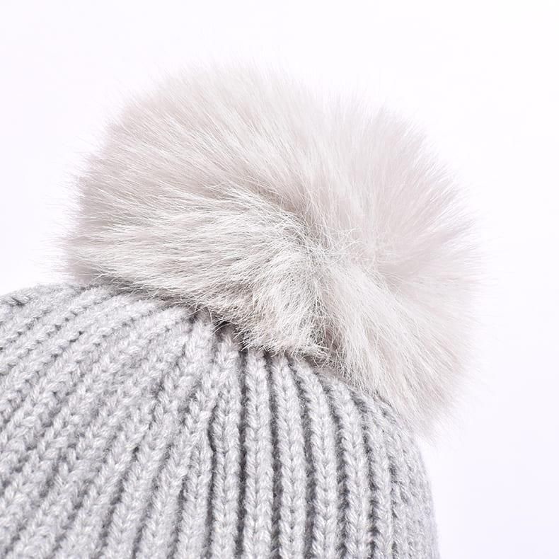 トップのふんわりとしたファーポンポンが、冬らしい遊び心をプラス。可愛らしさと防寒性を両立したデザインに仕上げています。