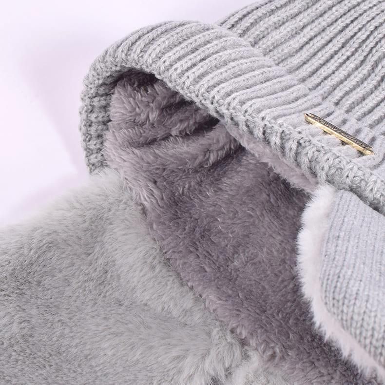 外側には肉厚なリブニットを使用し、内側にはふわふわのファーを全面に配置。耳まわりをしっかり覆う形状で、冷気の侵入を防ぎながらも柔らかく包み込むようなフィット感を実現しました。