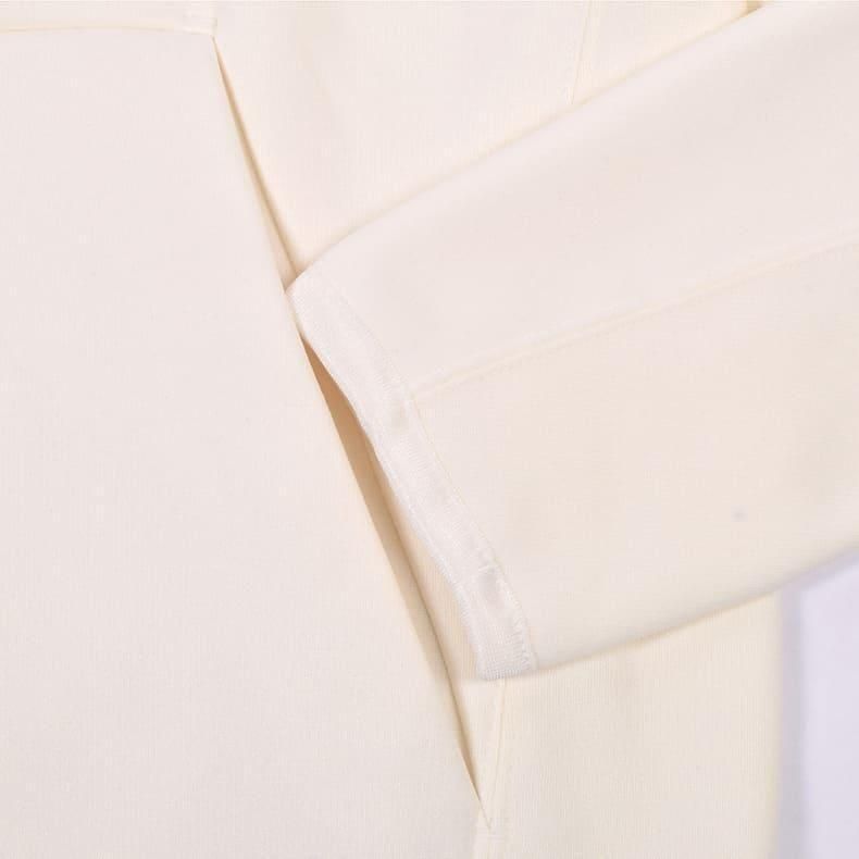 胸元と背面にあしらわれたブランドロゴは、立体感のある“ブラシ刺繍”で表現。ビッグメゾンでも採用されるこの手法は、起毛感のある糸を使い、繊細な陰影と存在感を生み出す上質な加工です。