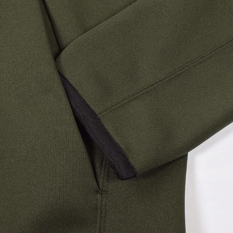 生地には、優れたストレッチ性を持ち、肌あたりがとても優しい裏起毛素材を採用。軽くて暖かく、長時間の着用でも快適に過ごせます。