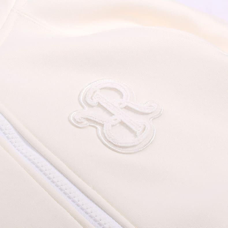 胸元と背面にあしらわれたブランドロゴは、立体感のある“ブラシ刺繍”で表現。ビッグメゾンでも採用されるこの手法は、起毛感のある糸を使い、繊細な陰影と存在感を生み出す上質な加工です。
