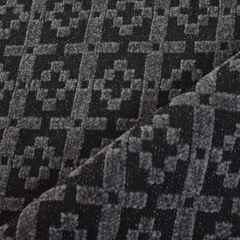 遠目には落ち着いたトーンながら、近くで見ると立体感のある織柄が表情を生み、シンプルなスタイルに個性と深みを添えてくれます。