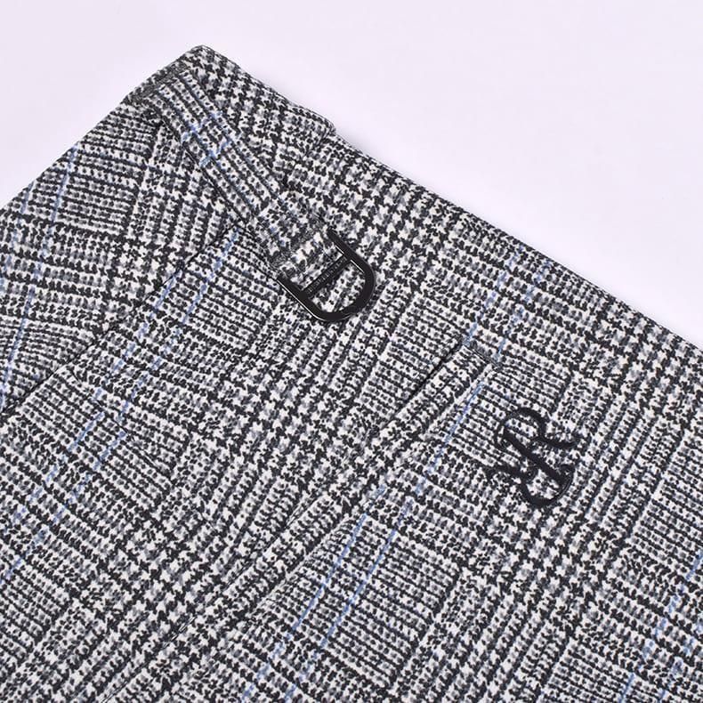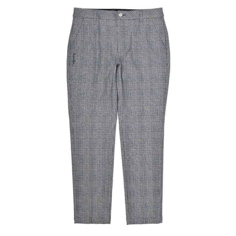 冬のラウンドを暖かく包むウォームチェックロングパンツ