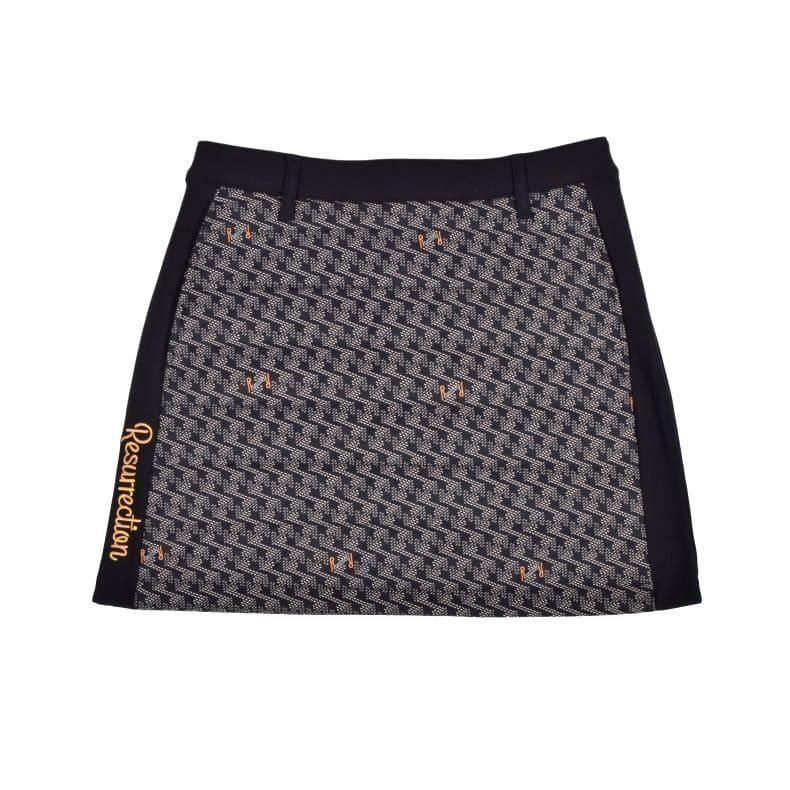 ブランドを象徴するレザレクション柄を全面に配した「GMプリントパデットスカート」。
