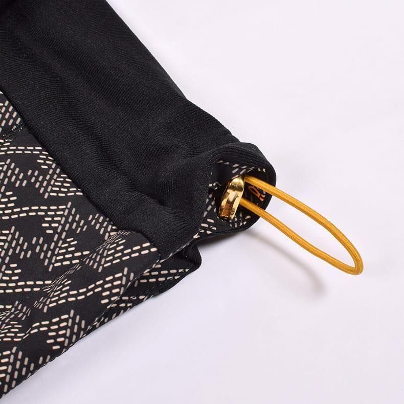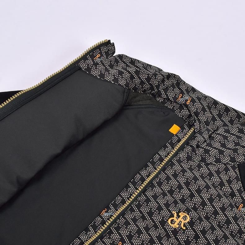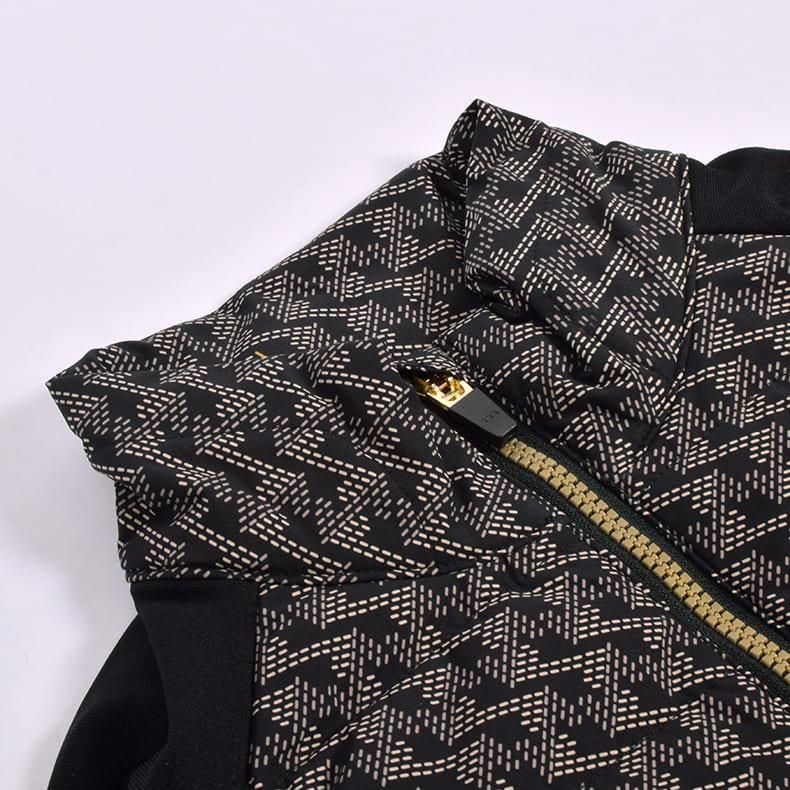 シルエットは無駄を削ぎ落としたスマートなライン。スタンドカラーのデザインが首元を美しく見せ、風の侵入を防ぎます。ファスナーやロゴ刺繍はゴールドで統一し、スポーティでありながらエレガントな印象に。